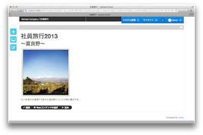 これはドキュメントリポジトリへファイルを追加したり、ファイルを編集したりするための管理ポートレットです。上部のドックバーからアクセスする管理画面に表示されるものと同じで、管理画面へのショートカットとして機能します。